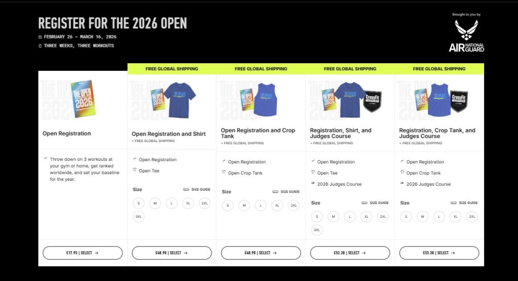 Prezzo registrazione CrossFit® Open 2026: tutte le opzioni disponibili